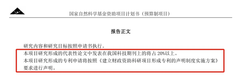(4)请项目负责人特别注意,本年度起包干制和预算制项目均实行新规:本项目研究形成的代表性论文中发表在我国科技期刊上的将占20%以上。本项目研究形成的专利申请将按照《建立财政资助科研项目形成专利的声明制度实施方案》要求进行声明。