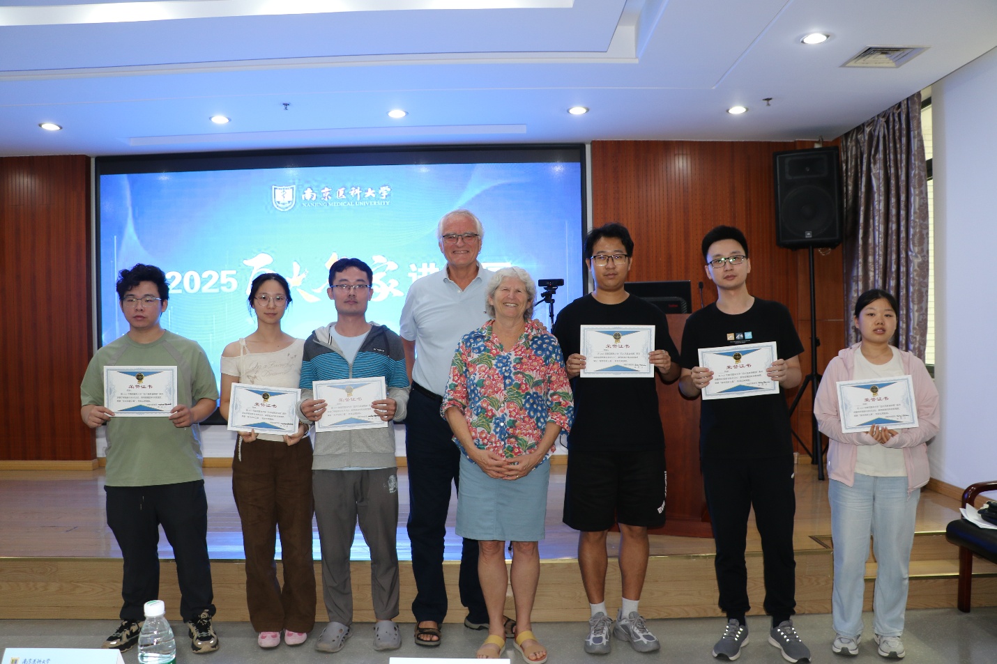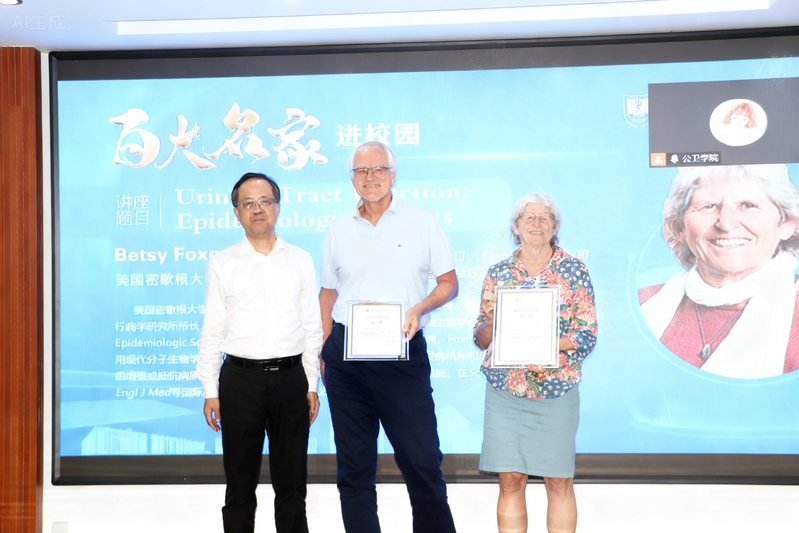 9月22日,2025年南京医科大学“百大名家进校园”系列学术讲座在江宁校区至诚楼G205报告厅成功举办。美国流行病学会前会长、密歇根大学感染性疾病分子与临床流行病学研究所所长Betsy Foxman教授和美国医学科学院院士、密歇根大学统计遗传学研究所所长Michael Boehnke教授应邀分别作题为“Urinary Tract Infection: Epidemiologic Insights”和“Identifying Genes for Type 2 Diabetes and Related Traits”的学术报告。公共卫生学院院长王建明教授出席活动与两位外宾亲切交流。王建明院长介绍了学校和学院发展情况,并为两位专家颁发了讲座证书。