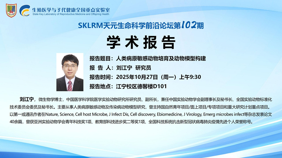 SKLRM天元生命科学前沿论坛第102期:中国医学科学院 刘江宁研究员