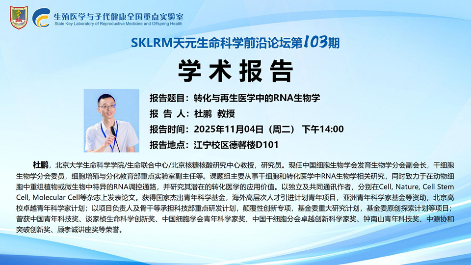 SKLRM天元生命科学前沿论坛第103期:北京大学生命科学学院 杜鹏教授