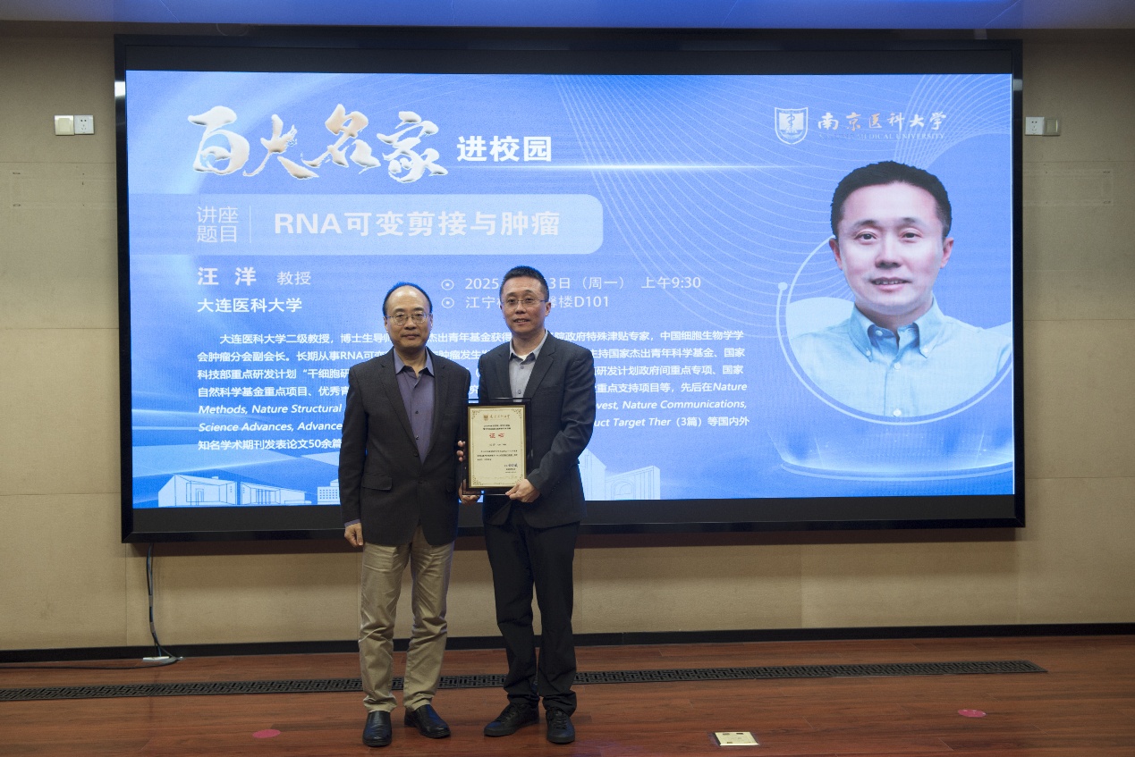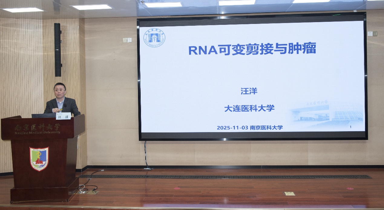 11月3日,2025年南京医科大学“百大名家进校园”系列学术讲座在德馨楼D101隆重召开。大连医科大学汪洋教授应邀为我校师生作题为“RNA可变剪接与肿瘤”的学术报告。南京医科大学科研院规划处处长周其冈、基础医学院院长苏川教授、姚兵教授等出席本次讲座。