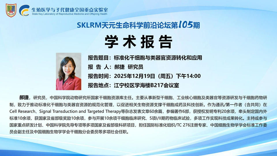 SKLRM天元生命科学前沿论坛第105期:中国科学院动物研究所 郝捷研究员