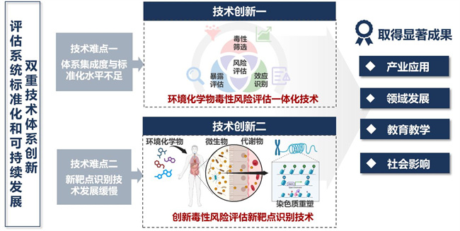 由夏彦恺教授团队主持的“环境化学物毒性风险评估方法和技术创新及其应用”获工程技术研究成果奖一等奖。该项目创造性地建立了环境化学物毒性风险评估集成化技术体系,实现了多种前沿技术的有机融合与协同运作,填补了国内外在该领域的技术空白。其形成的贯通化学物毒性筛选-暴露评估-效应识别-风险评估的一体化技术和贯通微生物结构-代谢重塑结构-染色质结构的多层次化学物机体互作多模式分析技术,扩展了环境化学物毒性筛选的广度、深化了机体互作机制精度。成果的核心内容形成转化为各级提案、报告,有力推动我国毒理领域规范化建设工作。