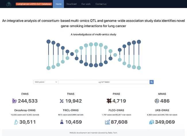 此外,研究团队同步发布了免费在线平台 LungCancer-xWAS-GxE(http://bigdata.njmu.edu.cn/LungCancer-xWAS-GxE/),供科研工作者查询肺癌所有的基因-吸烟交互作用信号。