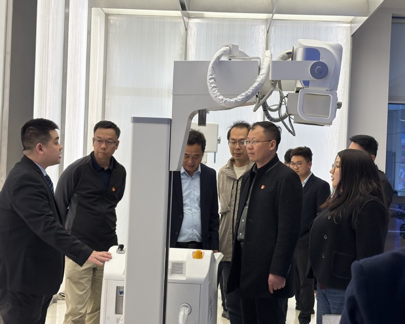 活动伊始,科研院党支部、生物医学工程系党支部及本科生党支部一同参观普爱医疗展厅。在创新成果展示区,师生支部党员通过技术人员的讲解和演示深入了解了企业在高端医疗设备研发和生产应用方面的情况。