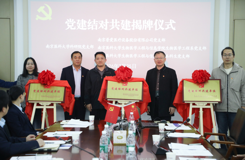 3月25日下午,科研院党支部联合南京普爱医疗设备股份有限公司党支部、南京医科大学生物医学工程与信息学院生物医学工程系党支部及生物医学工程与信息学院本科生党支部开展结对共建活动。活动以“党建引领聚合力,联建共建促发展。链接产教研,合力开新局”为主题。科研院副院长、党支部书记江胜强,南京普爱医疗设备股份有限公司负责人聂新坤,江宁高新区党群工作部副主管赵荣承,各支部书记、党员代表近40人参加活动。科研院平台处处长李仲主持支部联学共建环节。