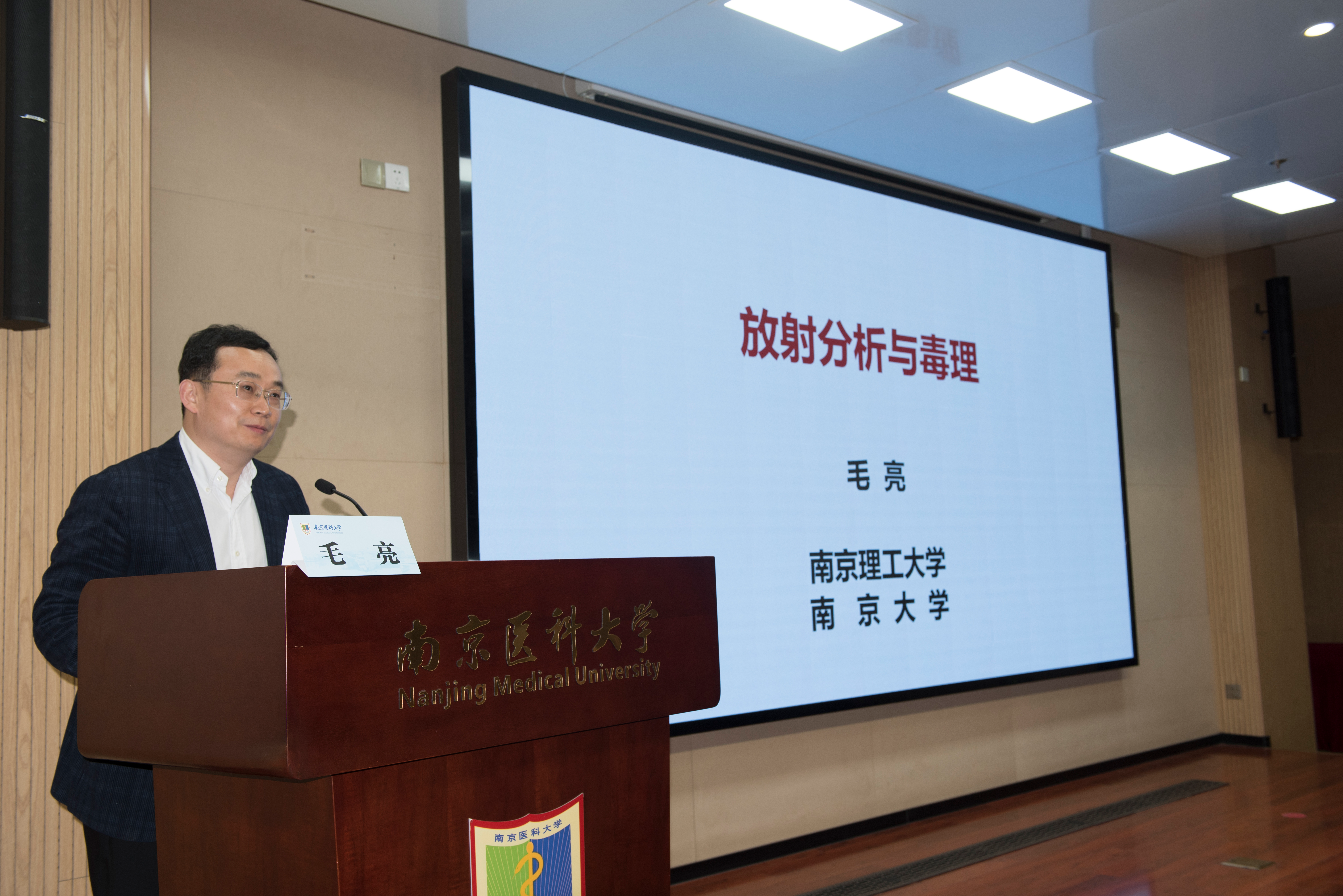 4月9日,2026年南京医科大学“百大名家进校园”系列学术讲座在江宁校区德馨楼D101报告厅隆重召开。南京理工大学毛亮教授受邀为我校师生带来题为“放射分析与毒理”的学术报告。南京医科大学生物医学工程与信息学院副院长胡本慧,科研院规划处处长周其冈、医学伦理与人遗办公室主任蒋涛,药学院张涛教授等出席了本次活动。