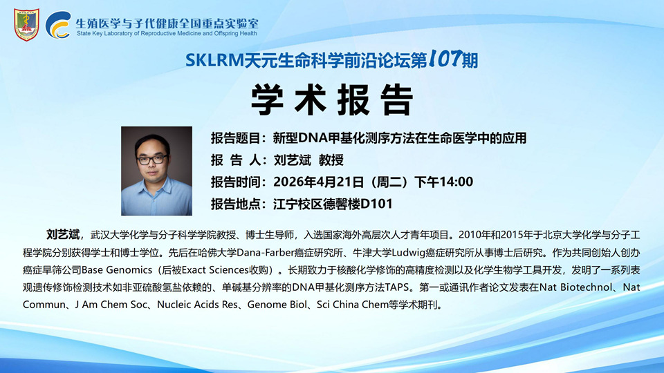 SKLRM天元生命科学前沿论坛第107期:武汉大学 刘艺斌教授